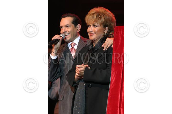 MEXICO; D.F., 30SEPTIEMBRE2005.- Angelica María y Juan José Origel, durante la develación de las 300 representaciones de la obra Cabaret, en el teatro Insurgentes. FOTO: Moisés Pablo/CUARTOSCURO.COM