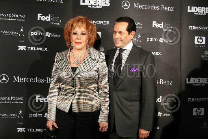MÉXICO, D.F., 19FEBRERO2010.- Lucia Mendez, actriz y cantante, posa para los fotógrafos junto con Juan José Origel, a su llega al teatro Manolo Fabregas para la develación de la placa por el 45 aniversario de dicho resinto. FOTO: MISAEL VALTIERRA/CUARTOSCURO.COM