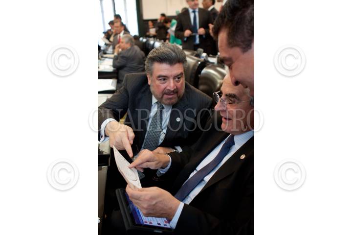 MÉXICO, D.F., 22MARZO2011.- Trabajo Legislativo. Los senadores panistas José Antonio Badia San Martin, Felipe González González y Ricardo Torres Origel, en la sesión de la Cámara de Senadores. FOTO: MOISÉS PABLO/CUARTOSCURO.COM