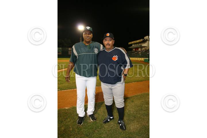 VILLAHERMOSA, TABASCO, 19MARZO2008.- Los managers de los equipos de LMB; Olmecas de Tabasco, Orlando Sánchez Márques y de los Piratas de Campeche, Héctor Estrada en el juego inaugural que se realizó en el estadio Centenario del 27 de Febrero. FOTO: MARCO POLO GUZMÁN HERNÁNDEZ/CUARTOSCURO.COM
