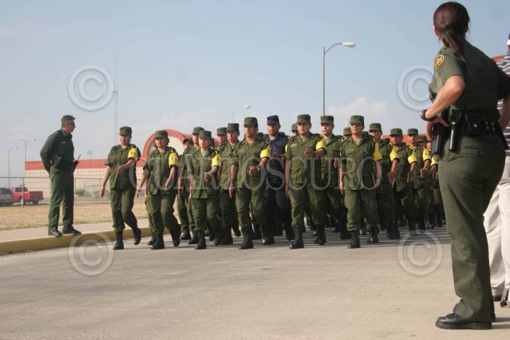 COLOMBIA,NUEVO LAREDO.-08SEPTIEMBRE2005.- Convoy Militar que viaja hacia San Antonio, Texas con ayuda de alimentos, agua y medicinas, para las víctimas del huracán Katrina en Nueva Orleans. Los soldados salen de las oficinas, despues de solicitar su permiso para internarse en EEUU. FOTO: Edgar Quintana/El Mañana de Nuevo Laredo