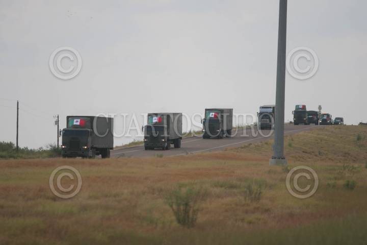 COLOMBIA,NUEVO LAREDO.-08SEPTIEMBRE2005.- Convoy Militar que viaja hacia San Antonio, Texas con ayuda de alimentos, agua y medicinas, para las víctimas del huracán Katrina en Nueva Orleans. FOTO: Edgar Quintana/El Mañana de Nuevo Laredo