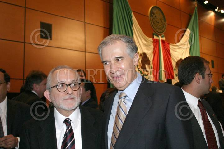 MEXICO, D.F., 26ABRIL2006.- Jesús Blancornelas, director del semanario Z de Tijuana, recibió un reconocimiento por su trayectoria por parte de la Cámara de Diputados. En la imagen lo acompaña Diego Valadez, academico de la UNAM. FOTO: Moisés Pablo/CUARTOSCURO.COM