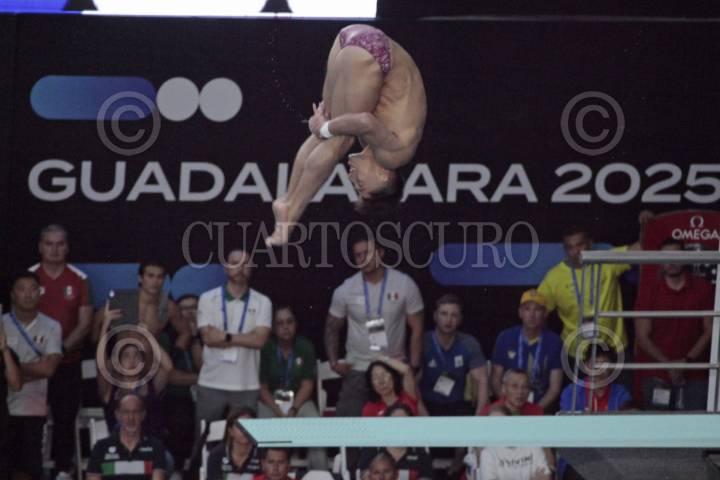 ZAPOPAN, JALISCO. 06ABRIL2025.- Hoy en el Centro Acuático Metropolitano y durante la justa deportiva del Mundial de Clavados Guadalajara 2025, se llevo a cabo la final en Plataforma de 10 metros Varonil, en el mexicano Randal Willars termino en 1er lugar, consiguiendo así el oro para su país. FOTO: FERNANDO CARRANZA GARCIA / CUARTOSCURO.COM