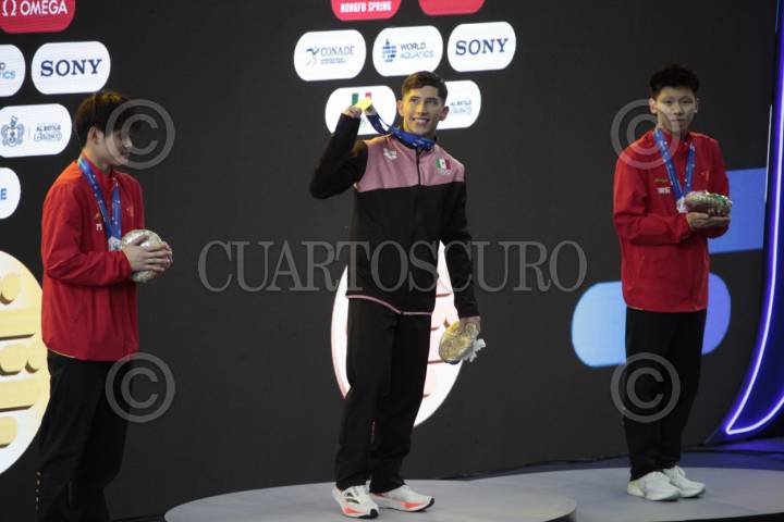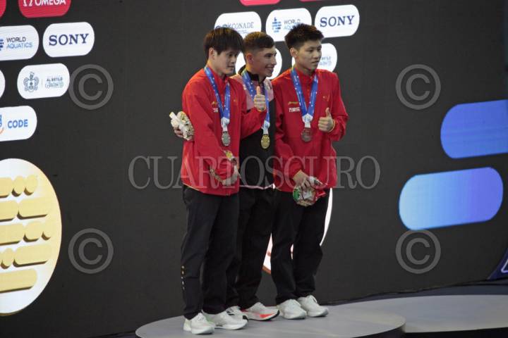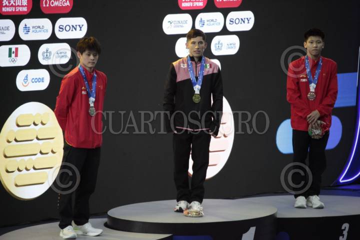 ZAPOPAN, JALISCO. 04ABRIL2025.- Hoy en el Centro Acuático Metropolitano y durante la justa deportiva del Mundial de Clavados Guadalajara 2025, se llevo a cabo la final equipo mixto 3 y 10 metros en donde el equipo Chino consiguió el Oro, seguido por el equipo italiano con la Plata y en tercera posición el equipo Alemán, el equipo Mexicano logro la cuarta posición pero no le alcanzo para subir al podio. FOTO: FERNANDO CARRANZA GARCIA / CUARTOSCURO.COM