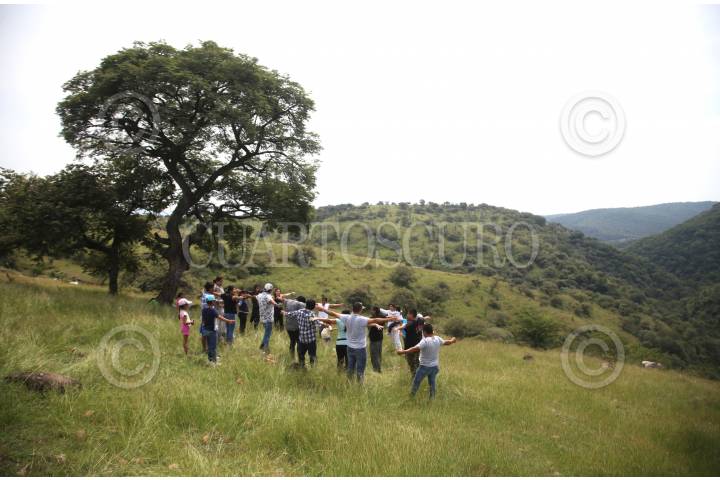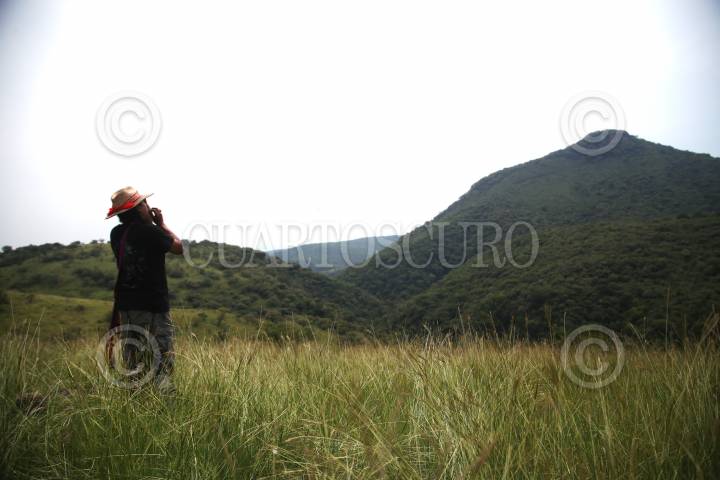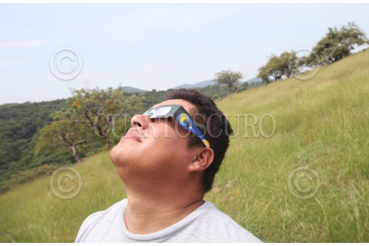 XOCHITEPEC, MORELOS, 14OCTUBRE2023.- Activistas del colectivo Guardianes del Territorio realizan la observación del eclipse de sol anular en La Loma, frente al cerro del Jumil. El colectivo Guardianes del Territorio se defiende de la actividad minera a cielo abierto de las empresas canadienses como la Esperanza Silver, que proyecta explotar el cerro del Jumil y otros para extraer oro a cielo abierto. FOTO: MARGARITO PÉREZ RETANA / CUARTOSCURO.COM