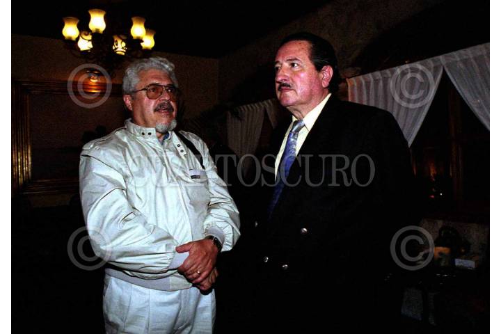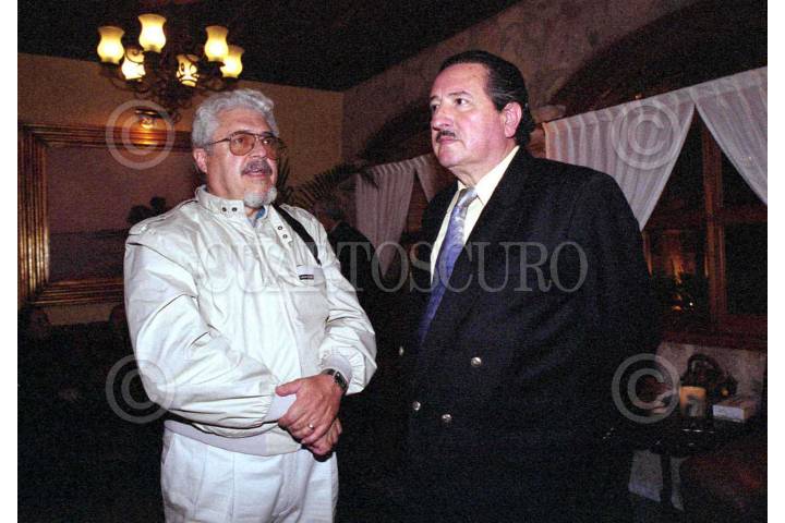 Felipe Garrido, director de publicaciones de Conaculta y Orso Arreola, hijo de Juan José Arreola en la capilla en donde es velado el cuerpo de su padre. Guadalajara, jalisco. Foto:Natalia Fregoso