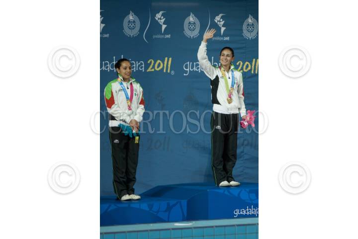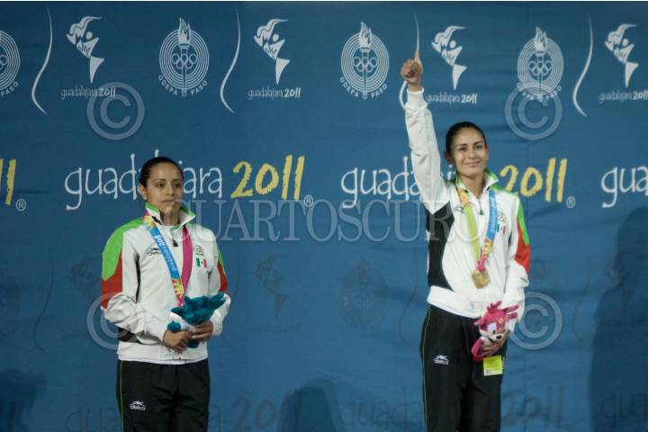GUADALAJARA, JALISCO, 26OCTUBRE2011.-Paola Espinosa obtuvo la medalla de oro y Tatiana Ortiz la de plata en la prueba de los 10 metros de clavados de los Juegos Panamericanos Guadalajara 2011. FOTO: IVÁN STEPHENS/CUARTOSCURO.COM