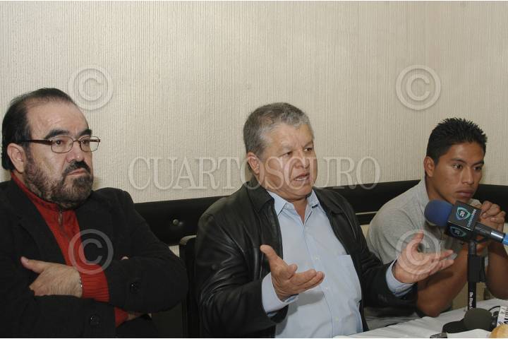 MÉXICO, D.F. 25ENERO2012.- José González Figueroa, integrante de la sección XXXVI del Valle de México, Artemio Ortiz, del Comité Ejecutivo Nacional Democrático del SNTE en Michoacán, y Eduardo Miranda Esquivel, Integrantes de la Unión de Juristas de México, durante una conferencia de prensa en la cual anunciaron una gran campaña en contra de la Evaluación Universal, los Nuevos Lineamientos de Carrera Magisterial, el Nuevo Modelo de Educación Básica. FOTO: MOISÉS PABLO/CUARTOSCURO.COM