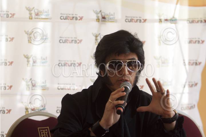 MÉXICO, D.F., 17ENERO2012.- Héctor Ortiz ofreció una conferencia de prensa para hablar sobre su concierto en el cual personifica a Elvis Presley el Rey del Rock, en el Teatro Esperanza Iris. FOTO: MOISÉS PABLO/CUARTOSCURO.COM