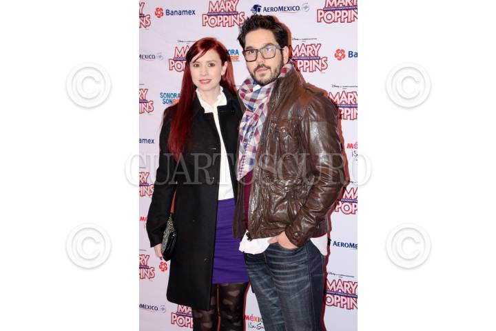MÉXICO, D.F., 20ENERO2012.- Andrea Torre y Pedro Ortíz de Pineo, posan durante la alfombra roja de la puesta en escena "Mary Poppins" en el Auditorio Nacional. FOTO: MISAEL VALTIERRA/CUARTOSCURO.COM
