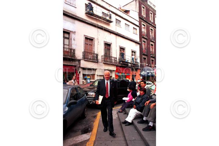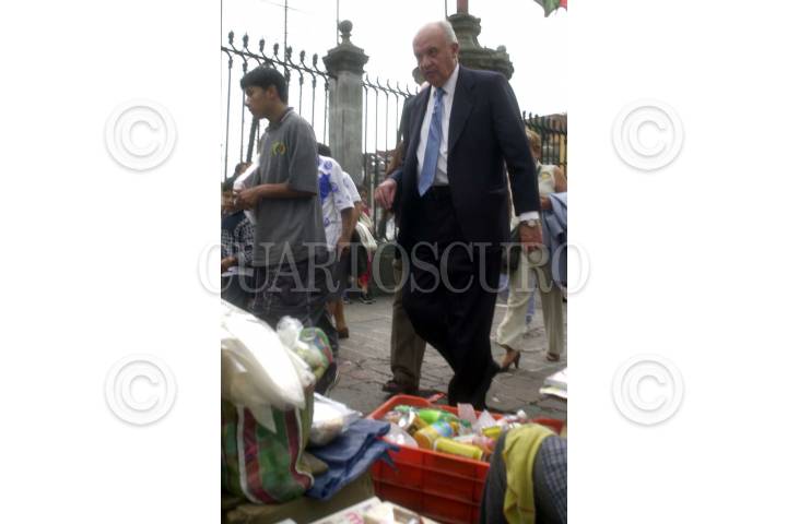 José Agustín Ortiz Pinchetti, Secretario de Gobierno del D.F., como cualquier ciudadano de la capital sufre en carne propia los estragos del ambulantaje en la Ciudad de México. FOTO: Christian Palma/CUARTOSCURO.COM