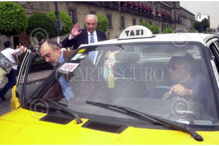 El Secretario de Gobierno del Distrito Federal, Ortiz Pinchetti, intenta abordar un taxi en la explanada del Zócalo capitalino. FOTO: Christian Palma/CUARTOSCURO.COM