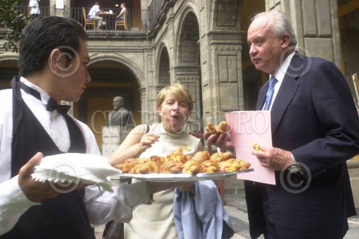 Después de las arduas mesas de trabajo del Foto de Gobiernos Metropolitano, el secretario de gobierno del DF, Francisco Ortiz Pinchetti, saborea un bocadillo. FOTO: Christian Palma/CUARTOSCURO.COM