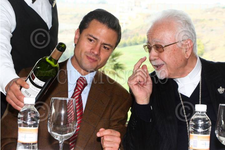 HUIXQUILUCAN, ESTADO DE MÉXICO., 17ENERO2009.- El arzobispo de la Iglesia Ortodoxa Antioqueña en México, Antonio Chedraui festejo sus 77 años en un exclusivo fraccionamiento del municipio de Huixquilucan, donde invito a diversos amigos, familiares, sacerdotes, embajadores, gobernadores y funcionarios del pais y del extranjero. En la imagen Enrique Peña y Antonio Chedraui. FOTO: SAÚL LÓPEZ/CUARTOSCURO.COM