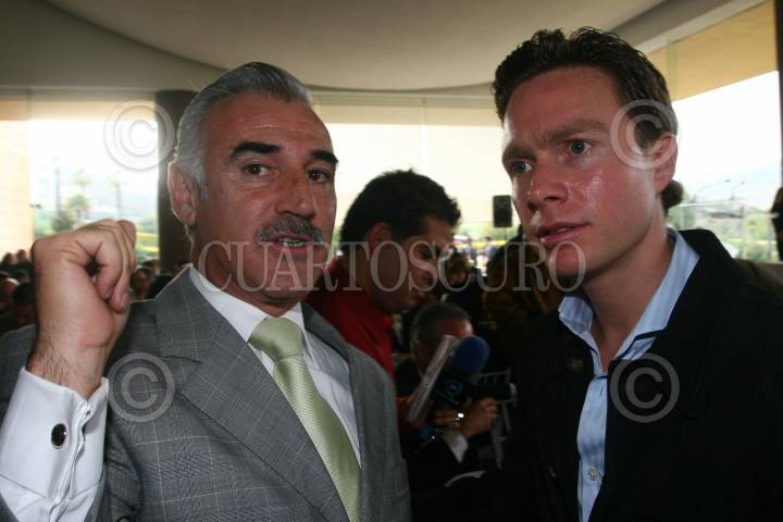 HUIXQUILUCAN, ESTADO DE MÉXICO., 17ENERO2009.- El arzobispo de la Iglesia Ortodoxa Antioqueña en México, Antonio Chedraui festejo sus 77 años en un exclusivo fraccionamiento del municipio de Huixquilucan, donde invito a diversos amigos, familiares, sacerdotes, embajadores, gobernadores y funcionarios del pais y del extranjero. En la imagen el empresario Carlos Peralta y el procurador de la ciudad de México Miguel Angel Mancera. FOTO: SAÚL LÓPEZ/CUARTOSCURO.COM