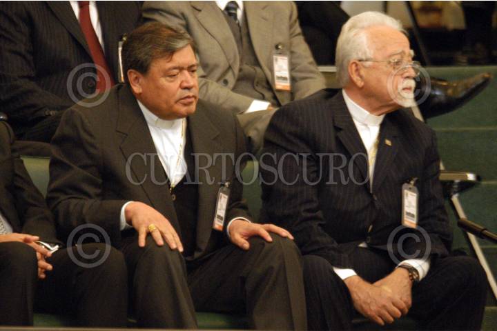 MÉXICO D.F. DICIEMBRE2006.- El cardenal Norberto Rivera acompañado de Antonio Chedraui arzobispo de la Iglesia Ortodoxa, durante la toma de protesta del Marcelo Ebrad Casaubón como nuevo jefe del gobierno capitalino. FOTO: GUILLERMO PEREA/CUARTOSCURO.COM