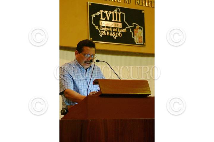 VILLAHERMOSA, TABASCO 21ABRIL2005.- El legislador y coordinador parlamentario del PRD, Adolfo Díaz Orueta dio lectura a una propuesta por el cual solicita que la soberanía del H. Congreso del Estado de la LVIII Legislatura se manifieste en contra del proceso ilegal de desafuero que enfrenta Andres Manuel López Obrador como jefe del Gobierno del Distrito Federal. FOTO: Marco Polo Guzmán/CUARTOSCURO.COM