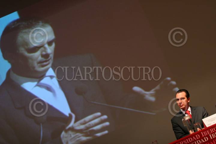 MÉXICO, D.F., 03SEPTIEMBRE2010.- Marcelo Ebrard Casaubon, Jefe de Gobierno del Distrito Federal y Carlos Orvañanos, durante una charla a medios de comunicación, estudiantes y profesores en la Universidad Iberoamericana previo a la inauguración del Corredor Santa Fé. Hoy viernes 3 de septiembre de 2010. FOTO: MISAEL VALTIERRA/CUARTOSCURO.COM