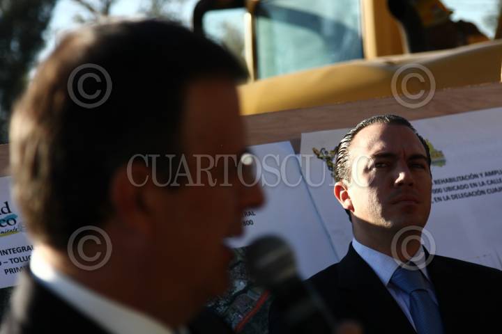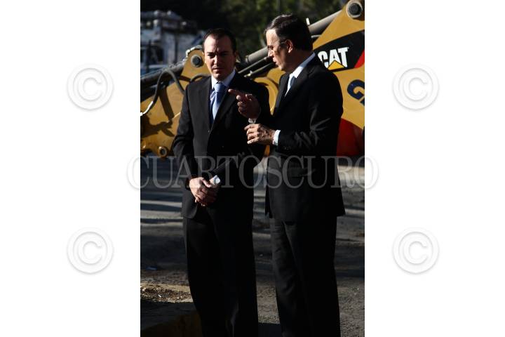 MEXICO, D.F., 05ENERO2011.- Marcelo Ebrard Casaubon, Jefe de Gobierno del Distrito Federal, acompañado de Carlos Orvañanos (derecha), Jefe Delegacional en Cuajimalpa, dio el banderazo de salida del proyecto de rehabilitación y ampliación de la carretera federal México-Toluca en la delegación Cuajimalpa. FOTO: MISAEL VALTIERRA/CUARTOSCURO.COM