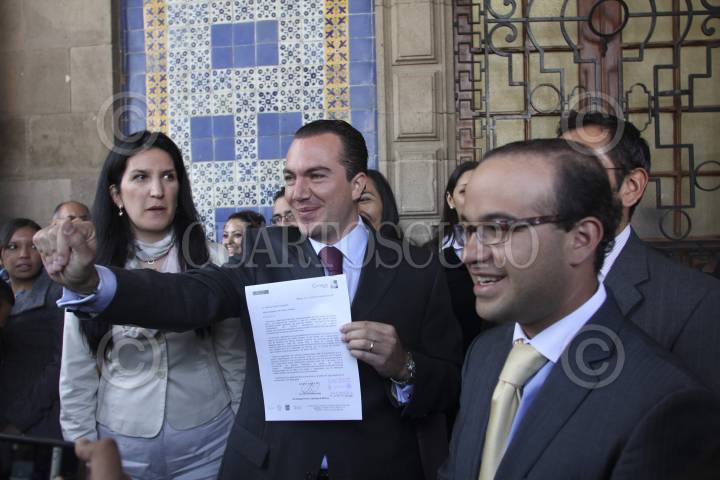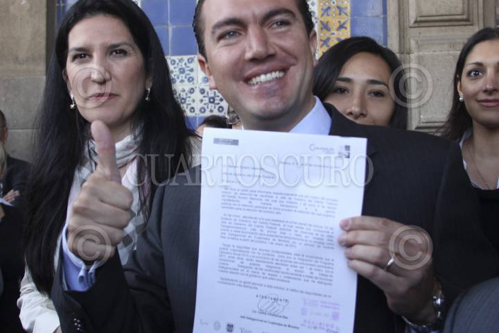 MÉXICO, D.F., 25MARZO2010.- El delegado en Cuajimalpa Carlos Orvañanos, acudió acompañado por Mariana Gómez del Campo a la fiscalía especializada en servidores públicos a presentar una denuncia contra la administración anterior por actos de corrupción en la demarcación. FOTO: LUIS CARBAYO/CUARTOSCURO.COM
