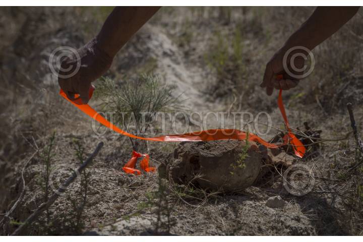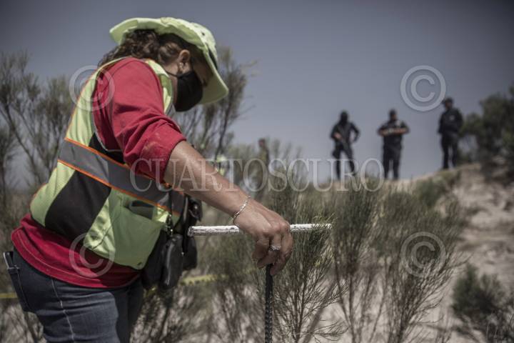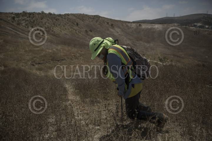 GUADALAJARA, JALISCO. 09JULIO2024.- El pasado domingo un reporte anónimo permitió que integrantes del Colectivo Corazones Unidos en Busca de Nuestros Tesoros, localizaran una fosa clandestina con al menos tres osamentas, esto en los cruces de la avenida Mariano Otero e Inglaterra en la colonia Pueblo Quieto, a un costado de las vías del tren por donde pasa la conocida “Bestia” y aproximadamente a 700 metros de la Glorieta de los Desaparecidos. FOTO: FERNANDO CARRANZA GARCIA / CUARTOSCURO.COM
