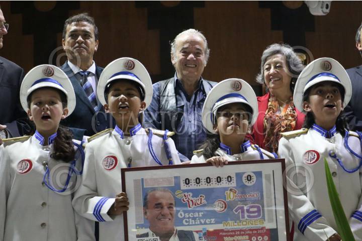 CIUDAD DE MÉXICO, 26JULIO2017.- El cantante y compositor Óscar Chávez asistió a la Lotería Nacional para la Asistencia Pública para realizar el sorteo en su honor y presenciar el billete de lotería que le realizaron para conmemorar su trayectoria artística. FOTO: SAÚL LÓPEZ /CUARTOSCURO.COM
