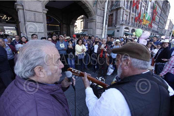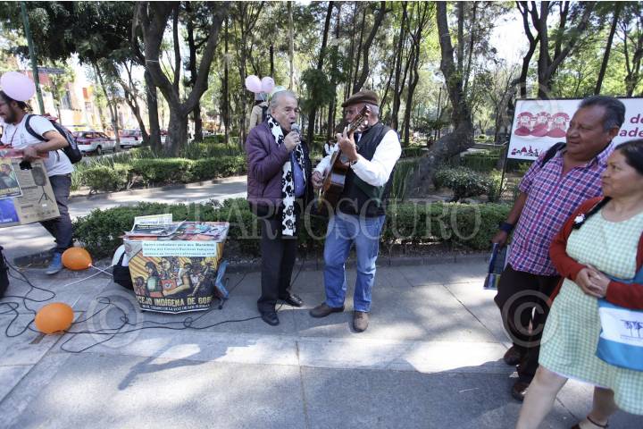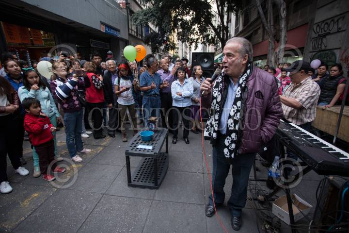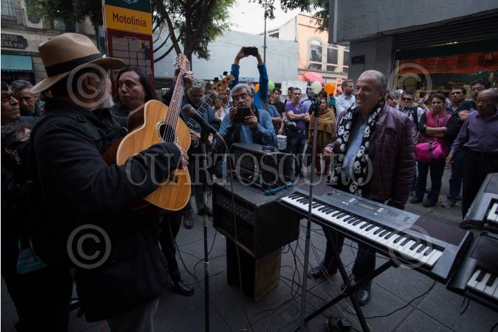 CIUDAD DE MÉXICO, 04ENERO2018.- Óscar Chávez, acompañó a una brigada de la Red Universitaria de Apoyo a Marichuy para recabar firmas por las calles del centro histórico. El cantautor mexicano, cantó algunas de sus composiciones con artistas y múscios urbanos, además de invitar a firmar por María de Jesús Patrico Martínez, aspirante a candidata por el Concejo Indígena de Gobierno a la Presidencia de la República. FOTO: ADOLFO VLADIMIR /CUARTOSCURO.COM