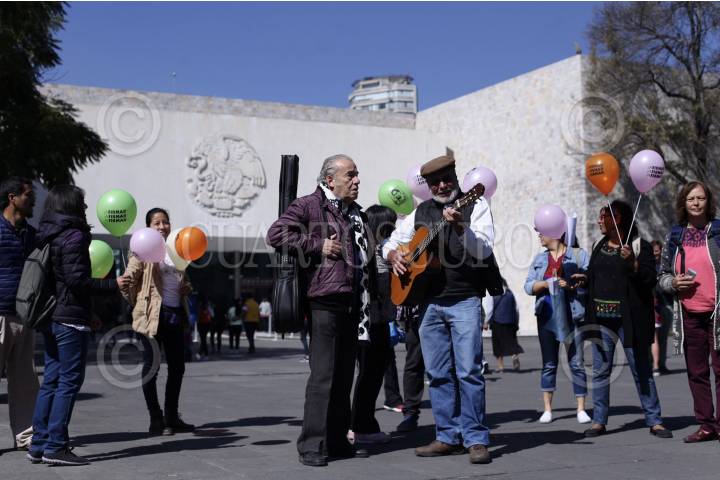 CIUDAD DE MÉXICO, 13ENERO2018.- Óscar Chávez, cantautor mexicano, recorrió la explana del Museo Nacional de Antropología, el jardín de la Ciudadela y la avenida Madero, para cantar algunas de sus canciones y ayudar con la recolección de firmas para Maria de Jesús Patricio Martínez, Marichuy, vocera del Concejo Indígena de Gobierno y quien busca la candidatura independiente a la presidencia de la República. FOTO: ADOLFO VLADIMIR /CUARTOSCURO.COM