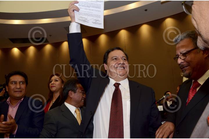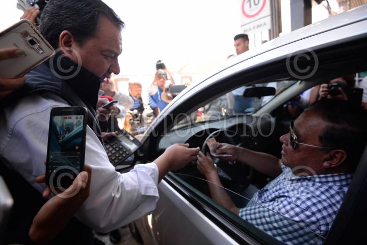 TOLUCA, ESTADO DE MÉXICO, 29MARZO2017.- Óscar González Yáñez acudió al Instituto Electoral del Estado de México a solicitar su registro como candidato a gobernador. Lo acompañaron Joel Cruz Canseco, representante ante este órgano electoral del Partido del Trabajo (PT). FOTO: ARTEMIO GUERRA BAZ /CUARTOSCURO.COM