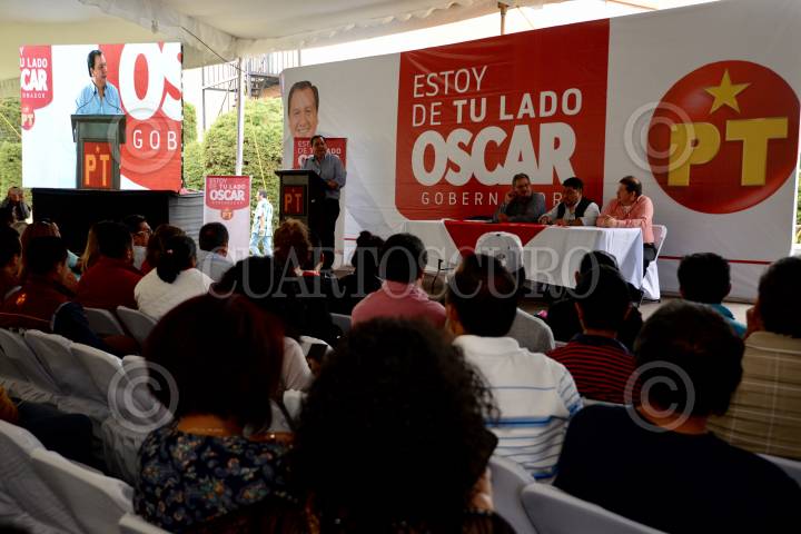 METEPEC, ESTADO DE MÉXICO, 09ABRIL2017.- Óscar González Yáñez, candidato a gobernador del Estado de México por el Partido del Trabajo, sostuvo un encuentro con la estructura política de su partido y les hizo un llamado a que trabajarán de forma honesta ante los órganos electorales para vigilar el proceso electoral del próximo 4 de junio. FOTO: ARTEMIO GUERRA BAZ /CUARTOSCURO.COM