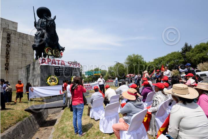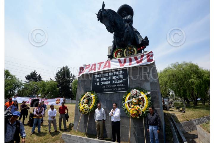 SAN MATEO ATENCO, ESTADO DE MÉXICO, 10ABRIL2017.- El candidato a gobernador del Estado de México por el PT, Óscar González Yáñez depósito una ofrenda floral y montó guardia de honor en el monumento de Emiliano Zapata ubicado en Paseo Tollocan por el 98 aniversario luctuoso del caudillo del Sur. FOTO: ARTEMIO GUERRA BAZ /CUARTOSCURO.COM