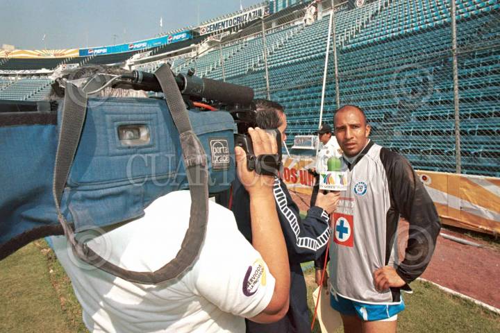 El guardameta de la Selección Nacional y del Cruz Azul, Oscar " Conejo" Perez es entrevistado al final del entrenamiento y se dice listo para su próximo encuentro ante los Tecos. FOTO: Pedro Mera/CUARTOSCURO.COM