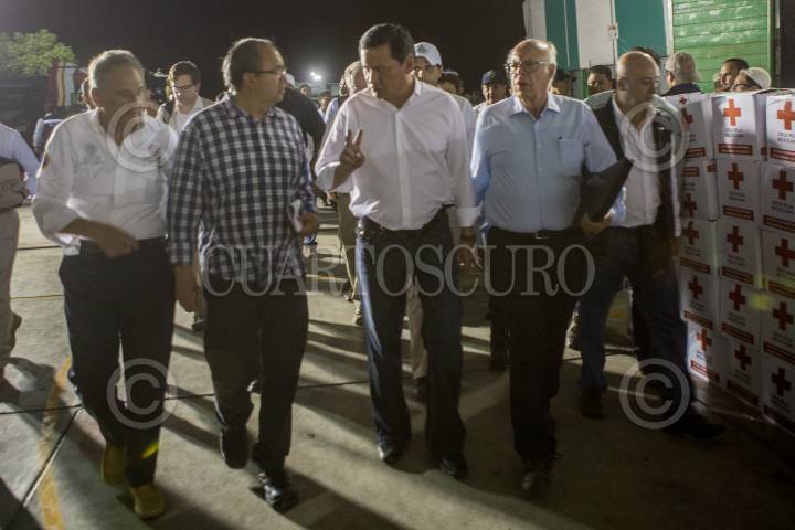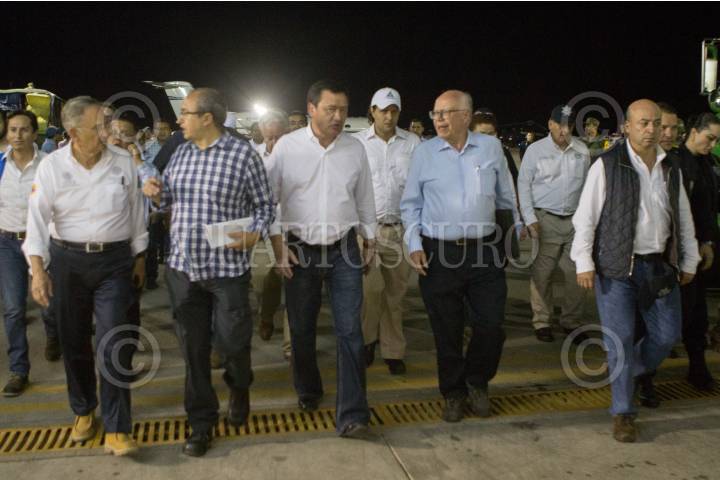 IXTEPEC, OAXACA, 12SEPTIEMBRE2017.- Miguel Ángel Osorio Chong, secretario de Gobernación, asistió por la noche de hoy a la Base Militar Aérea No. 2, para tener una reunión de evaluación con el gobernador del estado de Oaxaca, Alejandro Murat, y evaluar la situación que vive la zona del Itsmo tras el sismo de 8.2 grados del jueves pasado. En la reunión también estuvieron presentes José Narro Robles, secretario de Salud, y Renato Sales Heredia, Comisionado Nacional de Seguridad. FOTO: TERCERO DÍAZ /CUARTOSCURO.COM