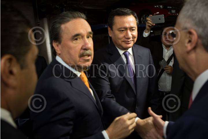 CIUDAD DE MÉXICO, 22NOVIEMBRE2017.- Miguel Ángel Osorio Chong, secretario de Gobernación, fue recibido por Emilio Gamboa Patrón, entre otros funcionarios a su llegada al Senado de la República para su comparecencia y análisis del 5to informe de gobierno. FOTO: TERCERO DÍAZ / CUARTOSCURO.COM