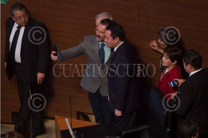 CIUDAD DE MÉXICO, 22NOVIEMBRE2017.- El senador Jesús Casillos, y Miguel Ángel Osorio Chong, secretario de Gobernación, durante su comparecencia en el Senado de la República. FOTO: TERCERO DÍAZ / CUARTOSCURO.COM