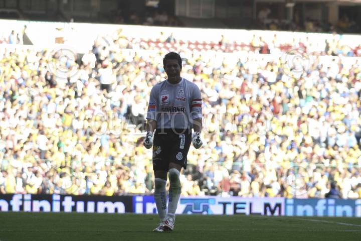 MÉXICO, D.F., 25NOVIEMBRE2010.- El portero Oswaldo Sanchez del Santos Laguna festeja la anotación de su equipo en contra de las Águilas del América en el encuentro de ida de las semifinales del torneo Apertura 2010 que se realizo en el estadio Azteca. Santos Laguna venció a las Águilas 2 goles por 1. FOTO: RODOLFO ANGULO/CUARTOSCURO.COM