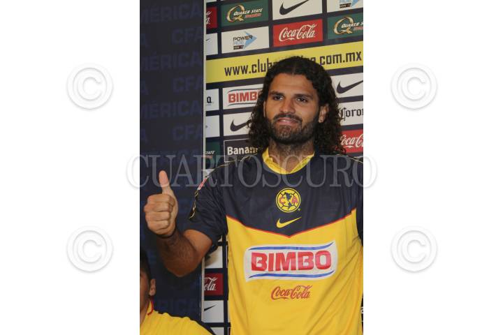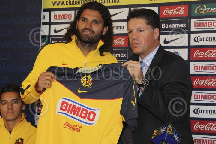 MÉXICO, D.F., 30DICIEMBRE2011.- En conferencia de prensa, Alberto Pelaes, director deportivo del Club América y Migue Herrera, DT del mismo club, presentaron al venezolano Oswaldo Vizcarrondo, como nuevo refuerzo del América para el próximo torneo. FOTO: IVAN MÉNDEZ/CUARTOSCURO.COM