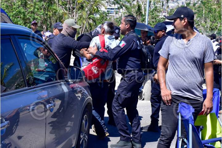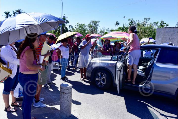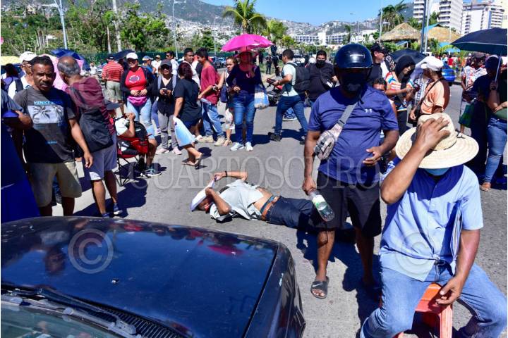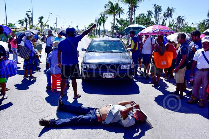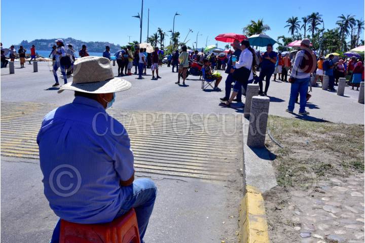 ACAPULCO, GUERRERO, 21FEBRERO2024.- Personas que se dicen no estar censadas bloquean la avenida Costera de Acapulco, en la zona del asta bandera, para exigir a las autoridades ser registrados y así recibir los apoyos de reconstrucción por afectaciones del huracán Otis. El día de ayer otro grupo de vecinos bloquearon la avenida Costera por más de 30 horas para exigir estos apoyos. Ante estas manifestaciones autoridades han señalado que se están revisando caso por caso, ya que se han detectado a personas que no viven en Acapulco. FOTO: CARLOS ALBERTO CARBAJAL/CUARTOSCURO.COM