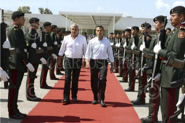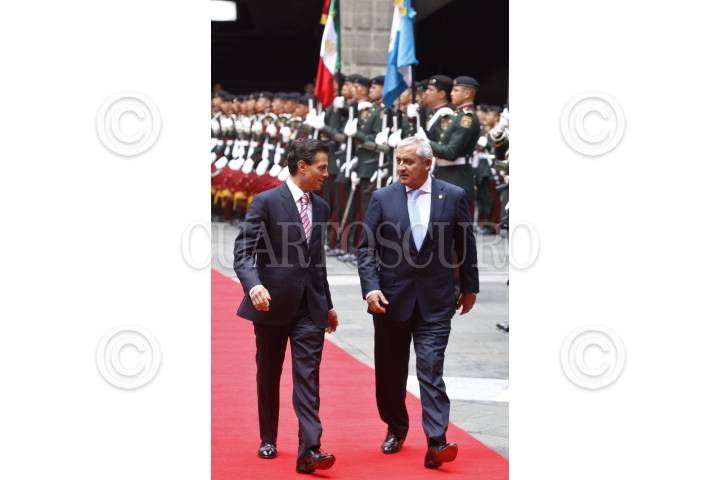MÉXICO, D.F., 13MARZO2015.- Otto Pérez Molina, Presidente de Guatemala y Enrique Peña Nieto, Presidente de México, durante la recepción oficial que le brindo el mandatario mexicano en el Palacio Nacional. FOTO: MOISÉS PABLO /CUARTOSCURO.COM
