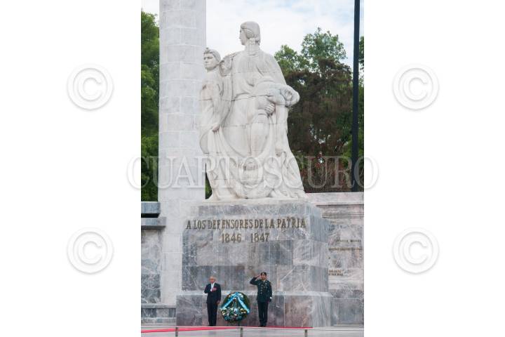 MÉXICO, D.F., 13MARZO2015.- Otto Pérez Molina, mandatario de la República de Guatemala, acudió al Altar de la Patria en la Primera Sección del Bosque de Chapultepec a colocar una ofrenda floral en el marco de su visita a México. FOTO: DIEGO SIMÓN SÁNCHEZ /CUARTOSCURO.COM