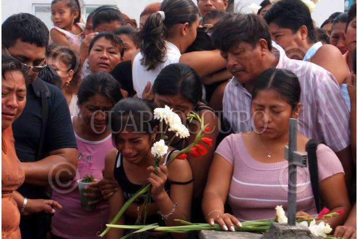 CENTRO, TABASCO, 11MAYO2007.- En el panteón de la Joya de la villa Ocuiltzapotlan fue sepultado el cuerpo del oficial de Seguridad Pública, Otilio Landero Ovando, quien fue ejecutado la madrugada de ayer por un grupo de hombres armados abordo de una patrulla, en una de las calles de la colonia La Manga. En la imagen sus familiares lloran durante el sepelio. FOTO: MARCO POLO GUZMÁN/CUARTOSCURO.COM