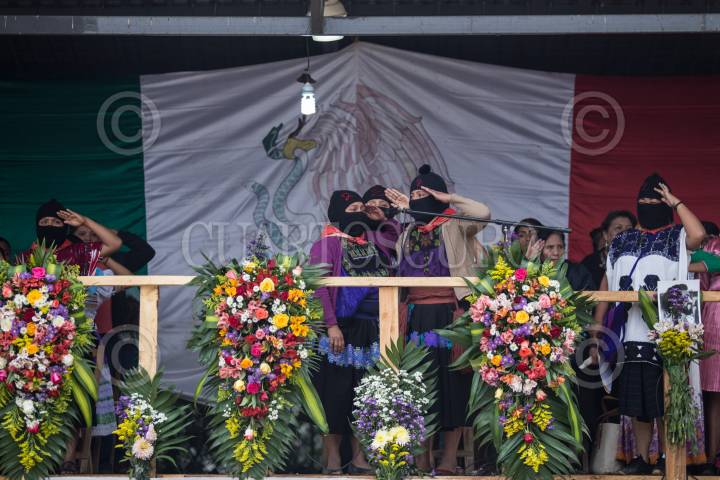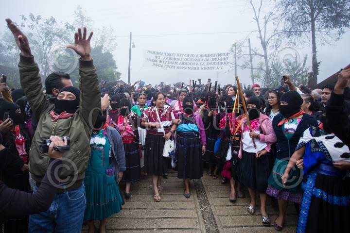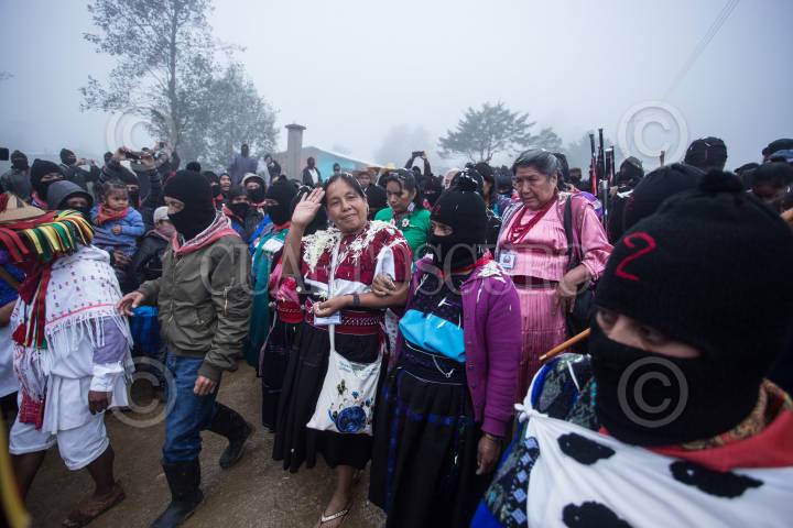 OVENTIC, CHIAPAS, 22OCTUBRE2017.- El jueves 19 de octubre se realizó el último saludo por parte de los pueblos indígenas zapatistas al Concejo Indígena de Gobierno (CIG) y su vocera y aspirante a candidata independiente a la presidencia de la república, Maria de Jesús Patricio Martinez "Marichuy". En el Caracol II Oventic, zona altos de Chiapas miles de bases de apoyo del Ejercito Zapatista de Liberación Nacional (EZLN) e indígenas tzotsiles y tzetales saludaron y respaldaron la búsqueda de la candidatura y la lucha por el pueblo de México que llevaría una mujer indígena como Marichuy en las próximas elecciones en el país. FOTO: ADOLFO VLADIMIR /CUARTOSCURO.COM