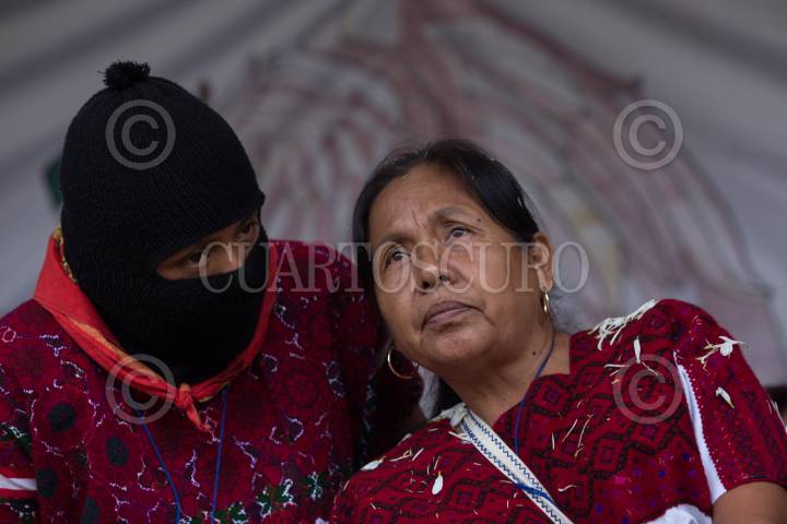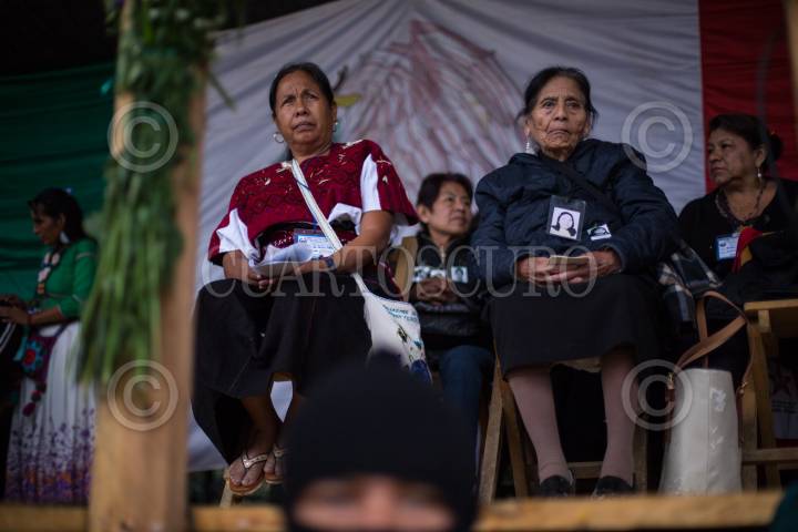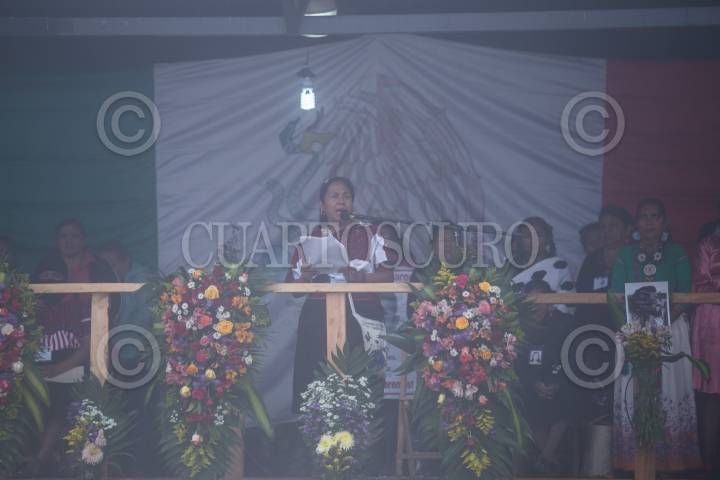 OVENTIC, CHIAPAS, 22OCTUBRE2017.- El jueves 19 de octubre se realizó el último saludo por parte de los pueblos indígenas zapatistas al Concejo Indígena de Gobierno (CIG) y su vocera y aspirante a candidata independiente a la presidencia de la república, Maria de Jesús Patricio Martinez "Marichuy". En el Caracol II Oventic, zona altos de Chiapas miles de bases de apoyo del Ejercito Zapatista de Liberación Nacional (EZLN) e indígenas tzotsiles y tzetales saludaron y respaldaron la búsqueda de la candidatura y la lucha por el pueblo de México que llevaría una mujer indígena como Marichuy en las próximas elecciones en el país. Al acto estuvo acompañando doña Reyna Santiago Rodríguez, integrante del Comité Eureka, madres en búsqueda de sus hijos desaparecidos en los 70's y 80's durante la guerra sucia en México. FOTO: ADOLFO VLADIMIR /CUARTOSCURO.COM