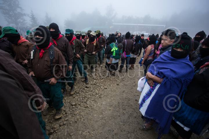 OVENTIC, CHIAPAS, 22OCTUBRE2017.- El jueves 19 de octubre se realizó el último saludo por parte de los pueblos indígenas zapatistas al Concejo Indígena de Gobierno (CIG) y su vocera y aspirante a candidata independiente a la presidencia de la república, Maria de Jesús Patricio Martinez "Marichuy". En el Caracol II Oventic, zona altos de Chiapas miles de bases de apoyo del Ejercito Zapatista de Liberación Nacional (EZLN) e indígenas tzotziles y tzetales saludaron y respaldaron la búsqueda de la candidatura y la lucha por el pueblo de México que llevaría una mujer indígena como Marichuy en las próximas elecciones en el país. FOTO: ADOLFO VLADIMIR /CUARTOSCURO.COM