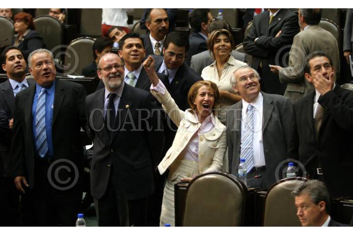 MÉXICO, D.F., 22MARZO2007.- La Ley del ISSSTE se aprobó en lo general con el apoyo de las fracciones paralamentarias del PAN, PRI y Nueva Alianza, en la Cámara de Diputados. En la imagen Ernesto Oviedo Oviedo, Felipe Borrego, Elia Hernández Nuñez, Juan José Rodríguez Prats y Diodoro Carrasco. FOTO: MOISÉS PABLO/CUARTOSCURO.COM
