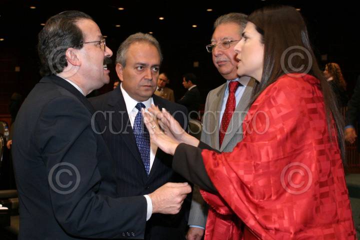MEXICO, D.F., 10MARZO2005.- Juan Molinar Horcasitas, diputado del PAN, José Ozuna Millán, diputado del PAN, Francisco Rojas, diputado del PRI y Marcela Guerra, diputada del PRI, durante la sesión ordinaria en la Cámara de Diputados. FOTO: Moisés Pablo/CUARTOSCURO.COM