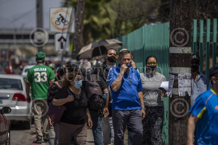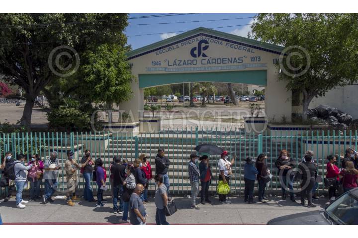 Cientos de ciudadanos que acudieron a recibir la vacuna P-fizer a la Preparatoria Federal Lázaro Cárdenas de Tijuana