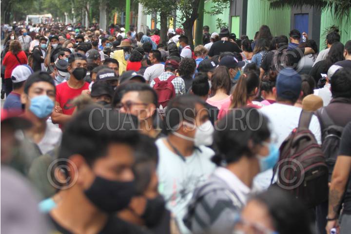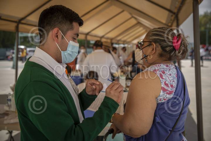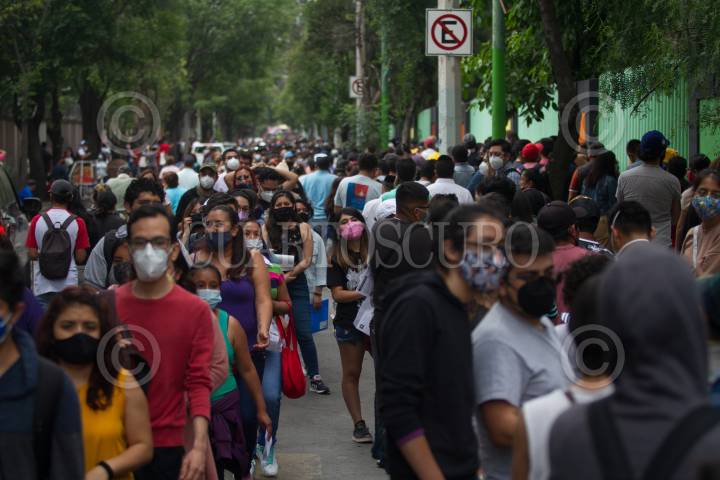 Por segundo día consecutivo, miles de jóvenes realizaron filas de aproximadamente dos horas para recibir la primera dosis de la vacuna P-fizer BioN-Tech contra Covid-19 en la Deportiva de Xochimilco
