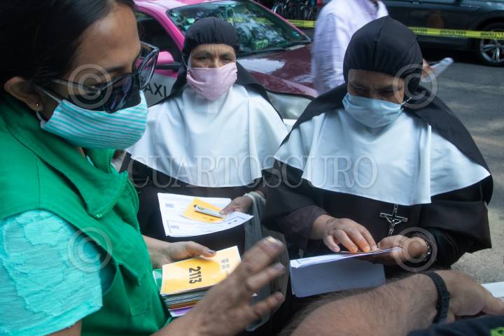 Monjas entre 50 y 59 años de edad acudieron a recibir la primera dosis de vacuna P-fizer en el Pepsi Center WTC